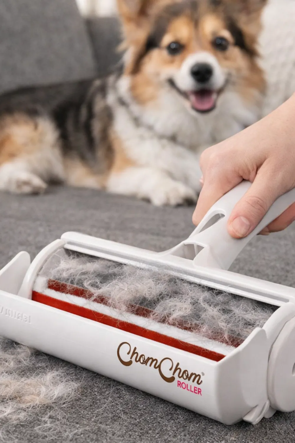 Removes pet hair from couches, carpets, and upholstery